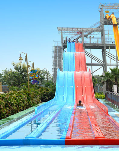 Reaching the finishing line has never been more fun. With a drop of 12m, this is a four person Mat racing slide in the Worlds of Wonder water park featuring drops and curves. The guest can see their competition as they travel down this amazing water attraction in the park. This high-thrill slide entertains the riders and the spectators alike, created with a perfect balance of safety and adrenaline in mind. Indulge in a healthy competition on Rapid Racer and challenge your friends/family down this exciting mat slide to find out who splashes first.